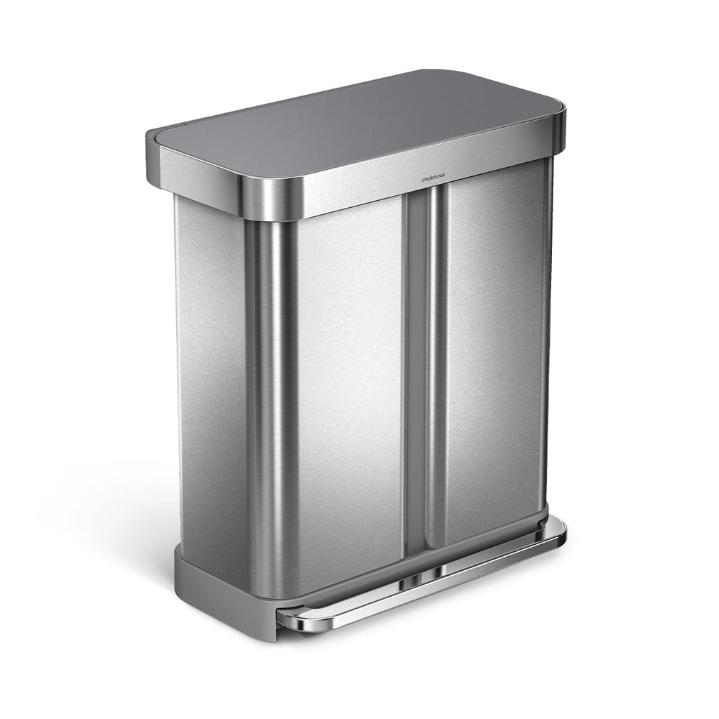 Os duplos compartimentos permitem separar o lixo e os recicláveis de forma organizada em um único local, compacto e eficiente .