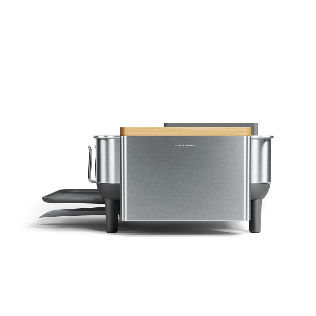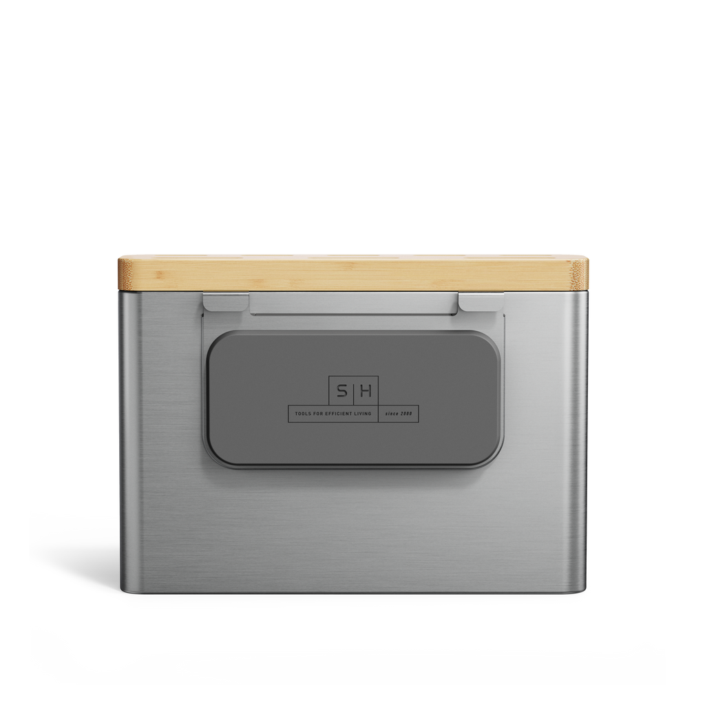 Projetado para encaixar na lateral do escorredor de aço da SimpleClean , nosso suporte para facas possui corpo de aço resistente e tampa de bambu antimicrobiana, que protege as facas, permitindo que sequem rapidamente e mantenham o fio.